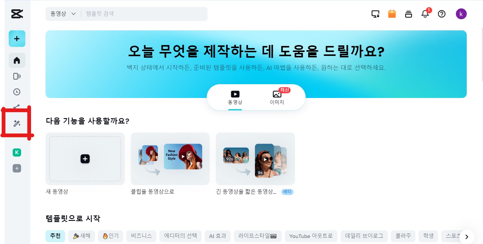 1. CAPCUT에 들어갑니다. (아래에 링크 첨부 됨)